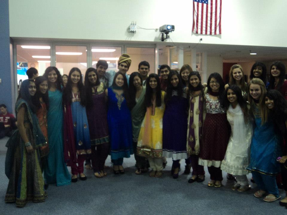 Friday: Fashion Show! Girls and Guys dressed up in their favorite Indian outfits and showed off their stuff in the Old Caf. Everyone had a great time taking pictures and showing classmates their beautiful clothes. Bollywood video songs were played in the background to hype up the crowd.
