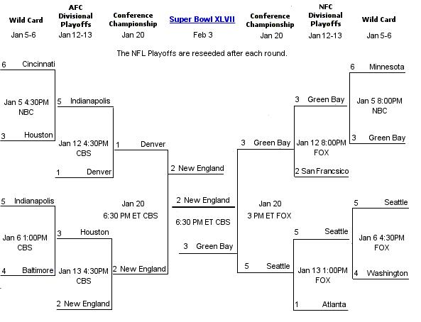 All in all, Wild-Card Weekend will be full of excitement. Below, you will see my bracket for the entire postseason (click on the image if you have trouble reading it). Check back next week for another detailed preview of the Divisional Rounds!