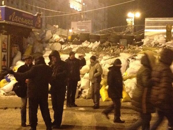 Protesters in Kiev, Ukraine build walls and barricades as fortifications during the protest
