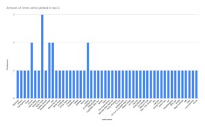 This survey was conducted through both in-person interviews and through DMs in Messenger and Discord. Participants either sent/showed a picture of their Spotify Wrapped (or equivalent for other music streaming apps), or just said their top artists. Out of the list given, the top three were taken.