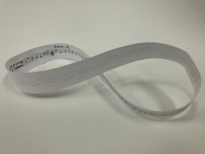 Description: Example of a one-sided, transparent film Möbius strip with the “Crab Canon”